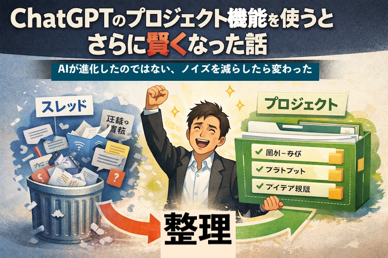 ChatGPT クラウド対話AI / 思考支援 【ChatGPT活用術】ChatGPTのプロジェクト機能を使うと、さらに賢くなった話 マイケル 1月 2, 2026 0 ―― AIが進化したのではない。ノイズを… 「続きを読む」